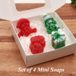 Gift-shaped soap: Height 40 mm (1.6 in), Width 30 mm (1.2 in)