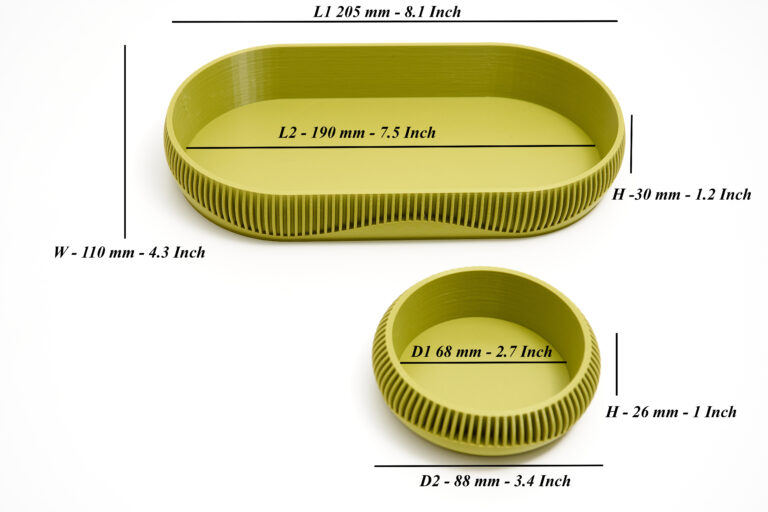The products are 3D printed using environmentally friendly PLA (Polylactic Acid) plastic, each design is created by me and can be modified upon your request.