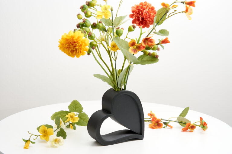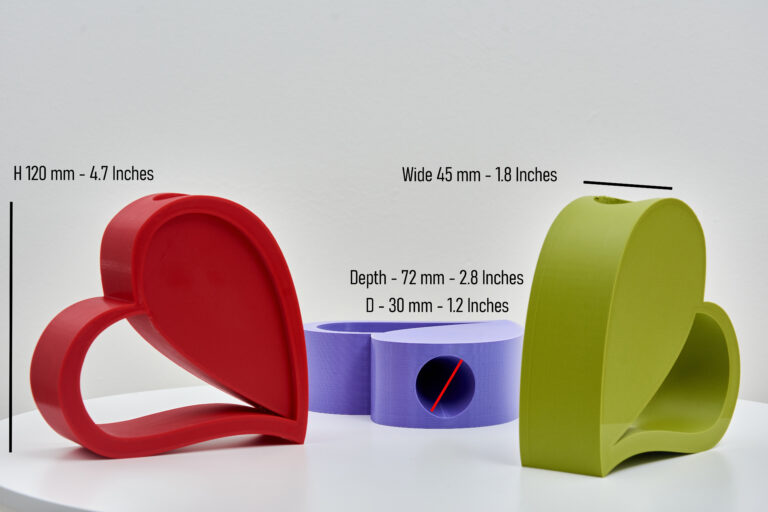 Crafted with meticulous attention to detail, our heart vase boasts an original design featuring a delicate vase nestled within, marrying classic sophistication with contemporary charm. Each vase is meticulously 3D printed using environmentally friendly PLA plastic, ensuring both durability and eco-consciousness.