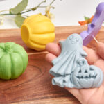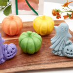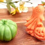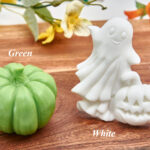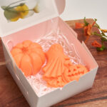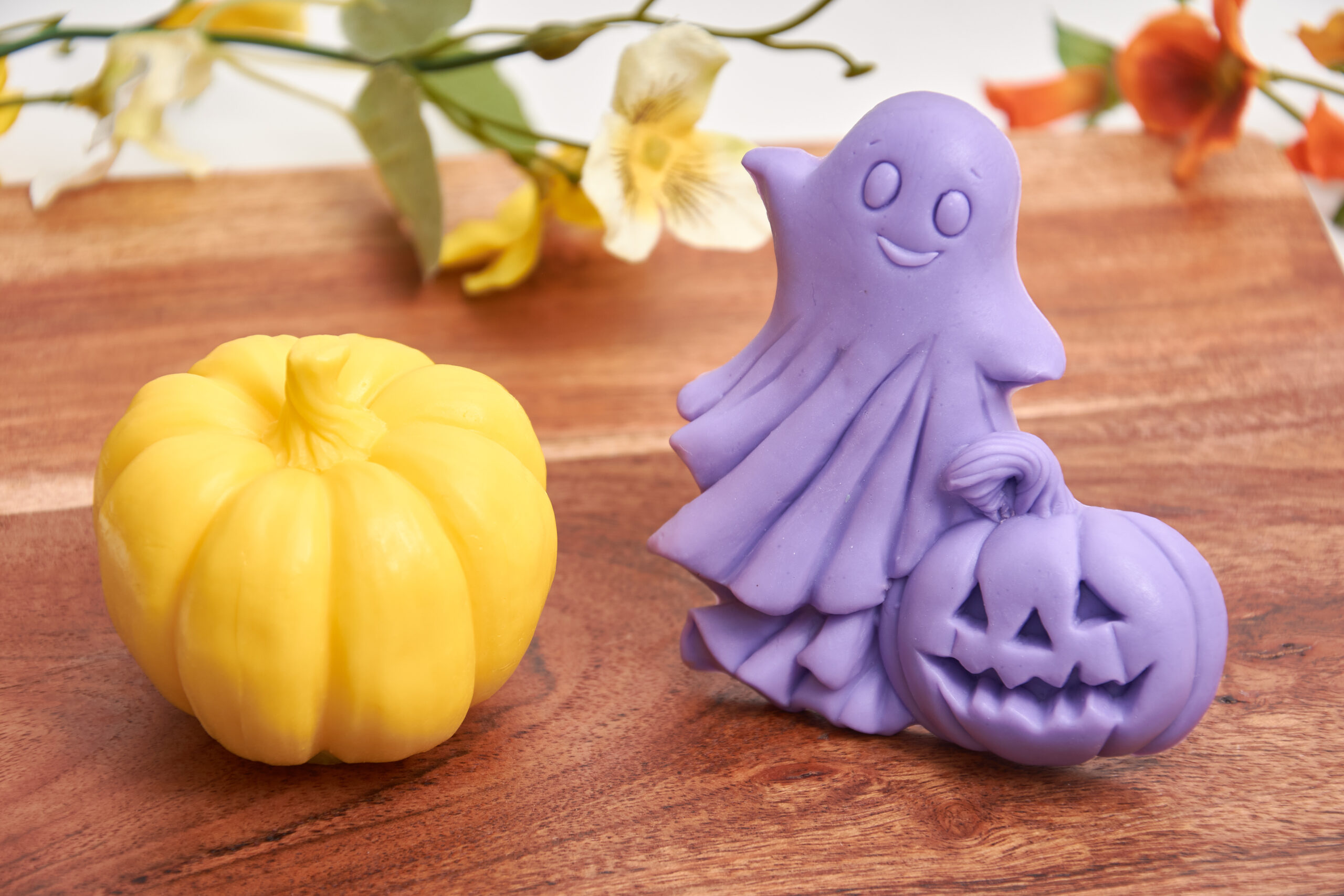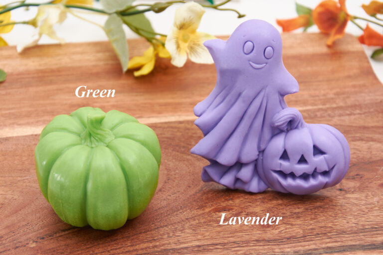 A special set featuring a pumpkin and a ghost, handcrafted from high-quality soap base enriched with organic shea butter