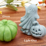 – green pumpkin and light grey ghost