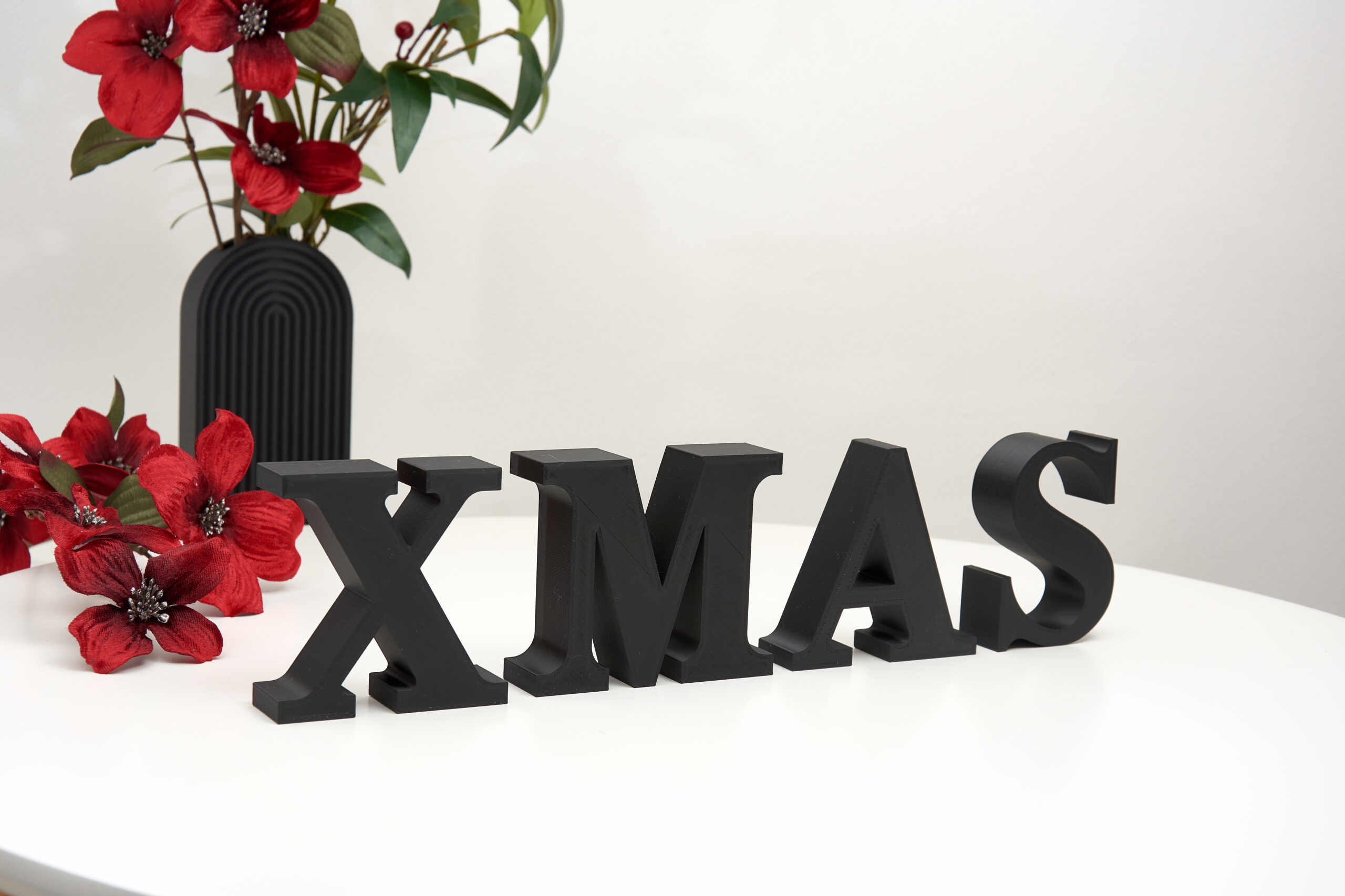Add a festive and elegant touch to your home with these “XMAS” decorative letters, available in black or red.